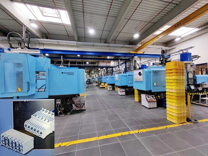 Na fábrica de moldagem por injeção em Hellenthal, 80 máquinas produzem diariamente 2,7 milhões de caixas para conectores com peso entre 0,1 e 16 gramas. (Foto: Klaus Vollrath)