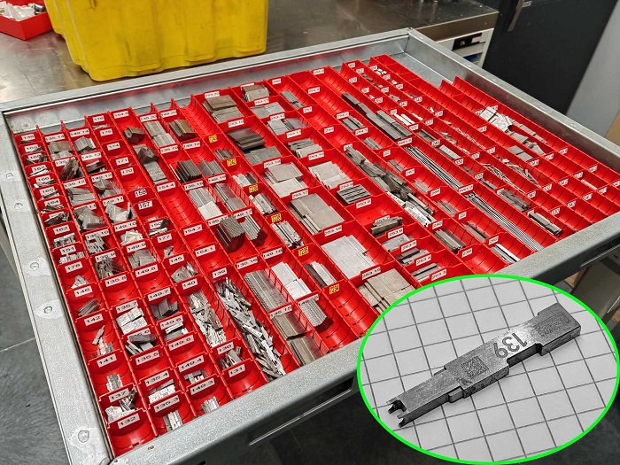 Encomenda meticulosa: Esta "caixa de ajuste" contém as numerosas peças individuais para um produto específico. Cada componente individual está marcado com um código QR. A gestão sofisticada da logística e do ERP e o registo quase contínuo dos dados de produção facilitam o trabalho dos funcionários. (Foto: Klaus Vollrath)