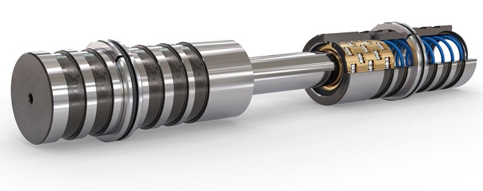 A Agathon desenvolveu, por isso, o Guiding System Plus como alternativa. Este consiste em longos pilares-guia retificados com precisão e tolerância h3 nos quatro cantos do molde, que deslizam em compartimentos de rolos correspondentes com rolos de alta precisão na metade oposta do molde. Os pilares-guia, os compartimentos e os rolos são fabricados com tal precisão que as guias funcionam com folga zero logo que entram na primeira fila de rolos. Graças ao seu contacto linear com o pilar guia, os elementos rolantes têm mais de 6 vezes a capacidade de carga e a rigidez de uma guia de pilar esférico. As metades do molde são assim guiadas com a máxima precisão ao longo de quase todo o comprimento do curso de fecho. Outra vantagem é a menor "pegada" desta solução "dois em um" em comparação com a abordagem tradicional. A omissão resultante do espaço necessário para os elementos de centragem planos permite que cavidades adicionais sejam acomodadas na mesma área de superfície. Alternativamente, um molde mais pequeno pode ser montado numa máquina mais pequena, oferecendo a mesma capacidade de produção.